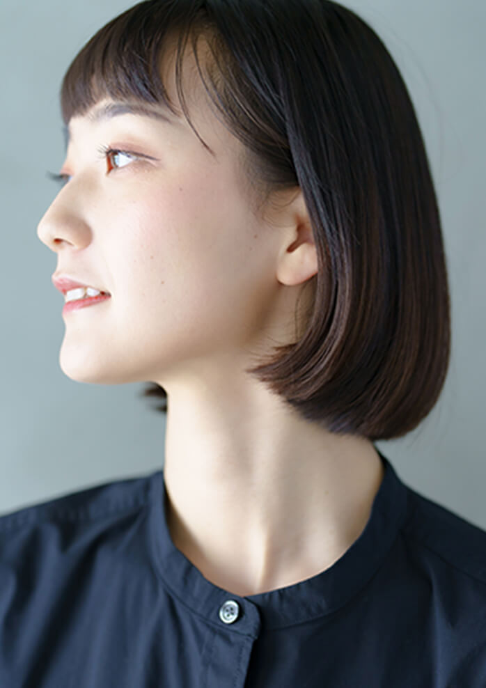- 顔型に合わせたカットで、小顔効果を演出します。