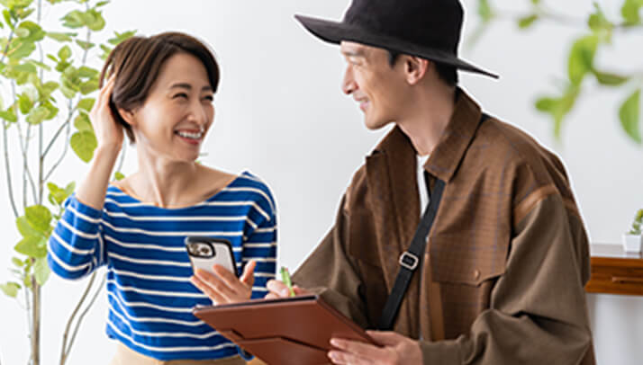 お客様のご希望やご質問などを伺い、最終的なヘアスタイルを決定します。